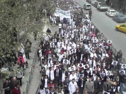 Ankara'da ise saat 11.30'da Numune Hastanesi önünde bir araya gelen binlerce sağlık çalışanı, "Bakan, Dr. Ersin nerede? ", "Yeter artık" ve "Bakan dur" yazılı dövizleri taşıyarak Sağlık Bakanlığı önüne yürüdü.